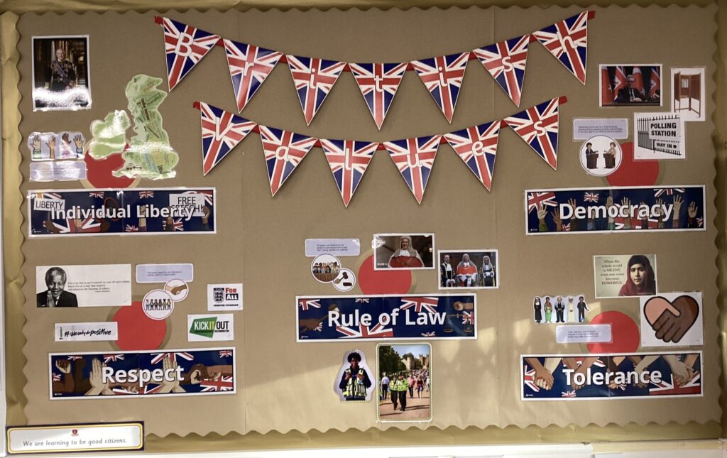 Pupils are encourage to regard people of all faiths, races and cultures with respect and tolerance and understand that while different people may hold different views about what is ‘right’ and ‘wrong’, all people living in England are subject to its law.